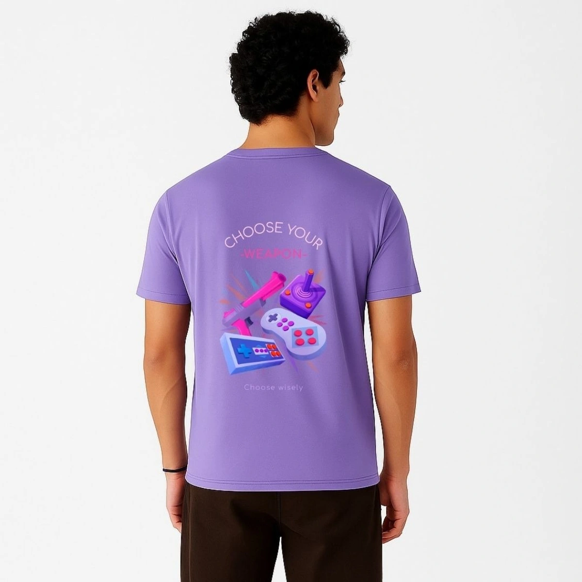 Men’s Premium Cotton Regular Fit T-Shirt – Lavender with “Choose Your Weapon” Graphic Print