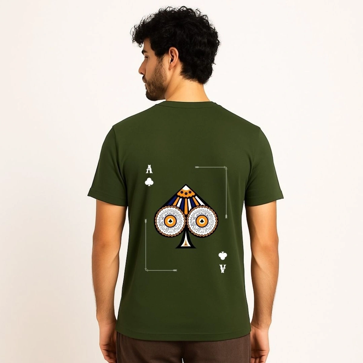 Men’s Premium Cotton Regular Fit T-Shirt – Olive with “Ace Card” Graphic Print