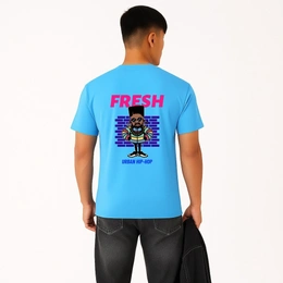 Men’s Premium Cotton Regular Fit T-Shirt – Sky Blue with “Urban Hip-Hop” Graphic Print