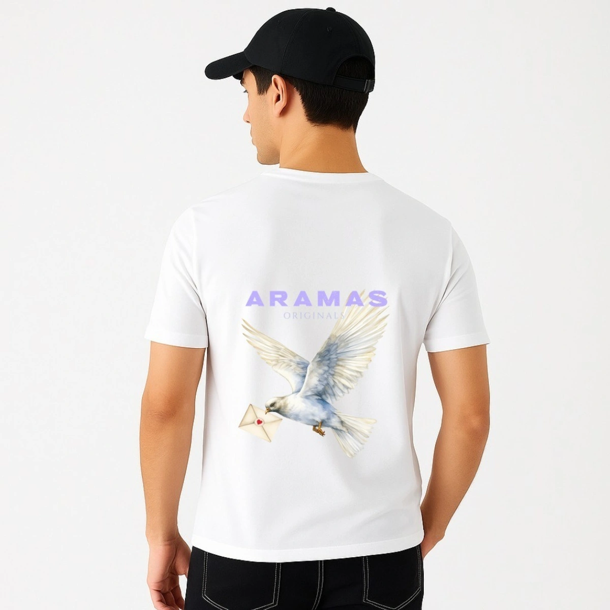 Men’s Premium Cotton Regular Fit T-Shirt – White with “Pigeon” Graphic Print